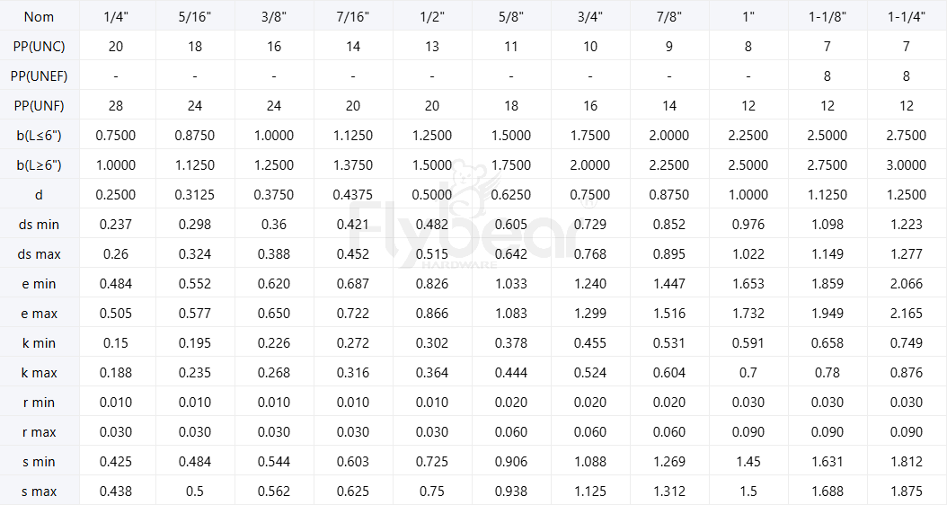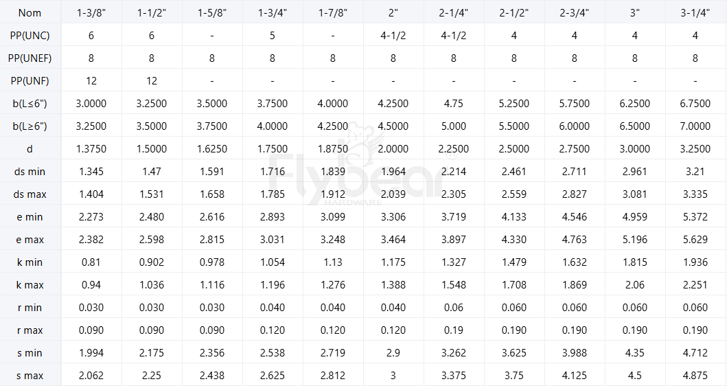 標準號:ASMEB18.2.1-2012Table2半牙