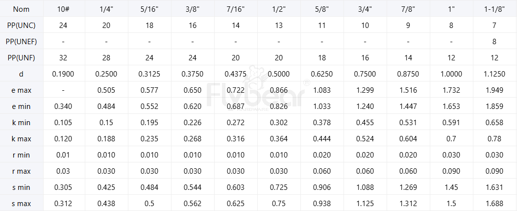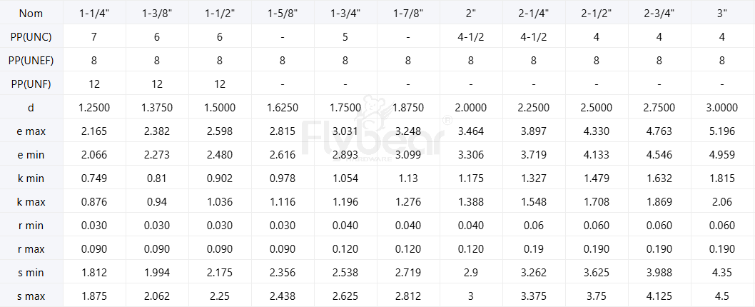 標(biāo)準(zhǔn)號:ASMEB18.2.1-2012Table2