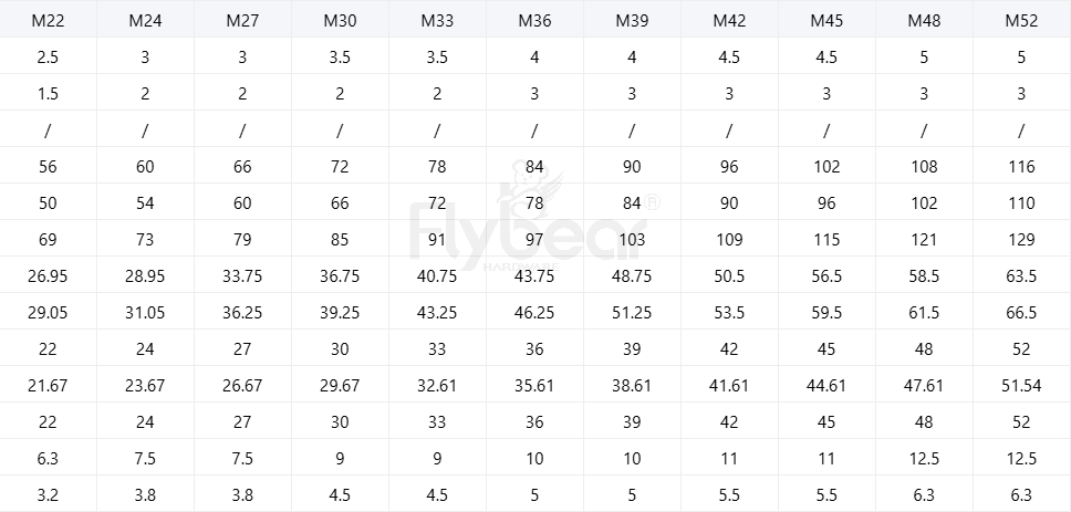 規(guī)格尺寸:M4-M52