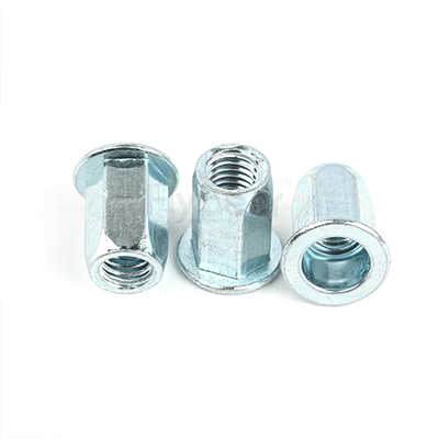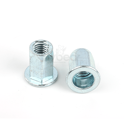 碳鋼藍白鋅平頭六角鉚螺母GB17880.5